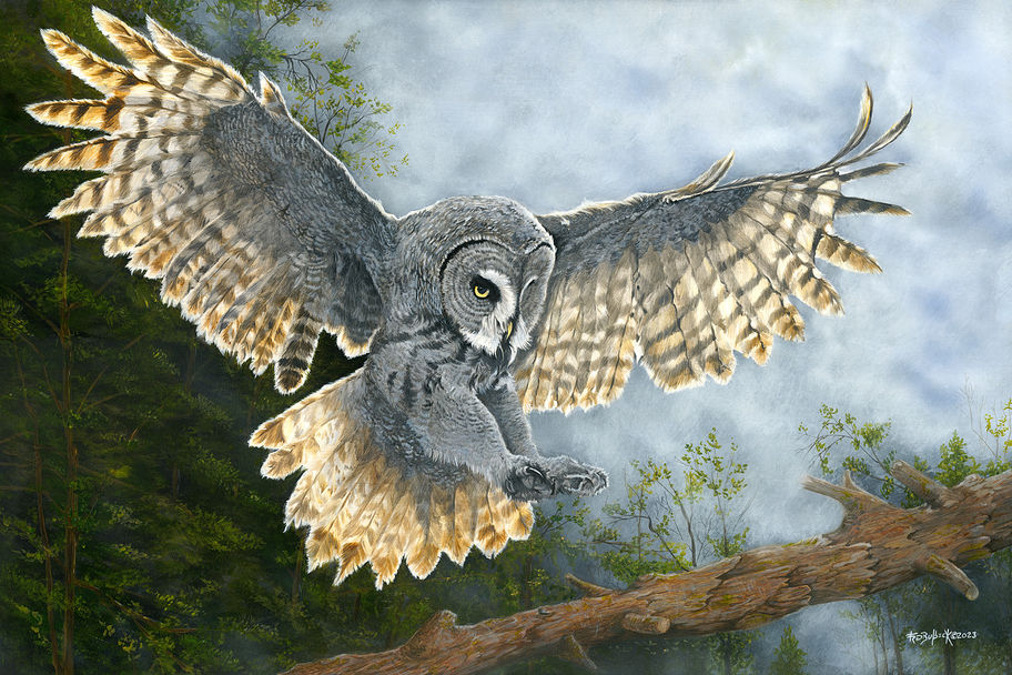 The Great Grey Owl was done with Acrylic Gouache originally.
